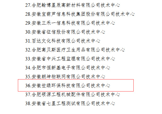 安徽世绿环保科技有限公司入选2022年合肥市企业技术中心拟认定名单